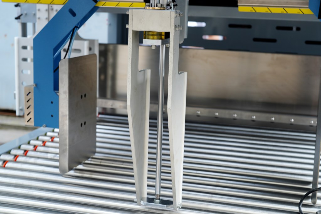 골판지 박스를 직각으로 정렬하는 이중 배출구 시스템입니다.